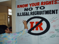 The Center for Migrant Advocacy (CMA), in partnership with the YMCA Philippines, YMCA Baguio, the City Government of Baguio, and Friedrich Ebert Stiftung (FES) held a forum on “A Call to Action: No to Illegal Recruitment and Trafficking” on September 14 at the Sangguniang Panglungsod Session Hall in Baguio City. This is the third installment of CMA’s 2007 series for the Dr. Alfredo J. Ganapin Advocacy Forum. The participants included officers and representatives of the Baguio City council, media, migrant-concerned NGOs and church-based groups based in the region and members and leaders of the barangay councils.